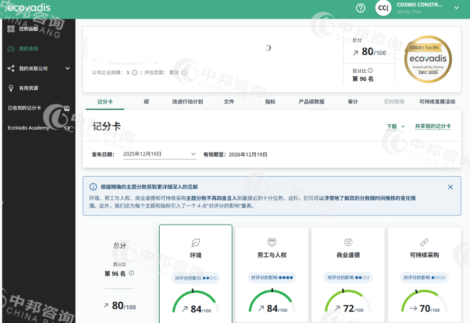 恭贺上海XX翻译有限公司2025年12月EcoVadis取得...