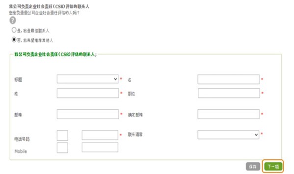 4. 填写公司主营信息,用于EcoVadis系统设置与公司相关的CSR审核调查问卷:
