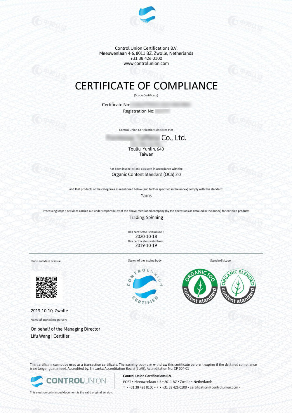 恭贺福建XX纺织有限公司2023年8月顺利通过OCS&GRS认证