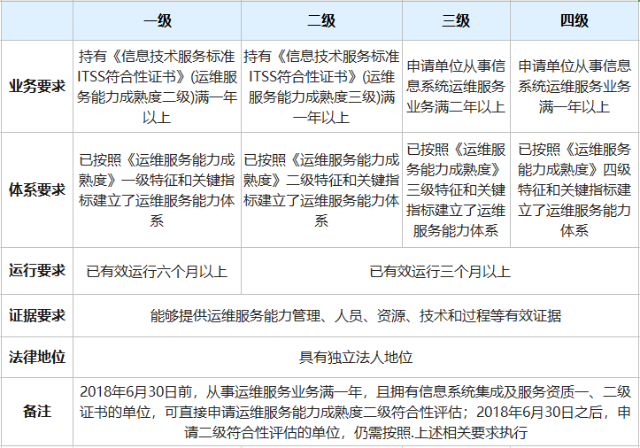 2、IT服务供方:(用于提供标准化的IT服务,提升服务质量并确保服务可信)ITSS运维能力成熟度符合性评估,主要包括: